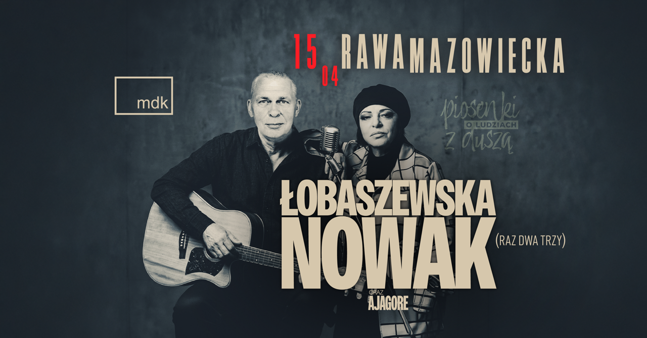 Miejski Dom Kultury im. Danuty Siedzikówny „Inki” w Rawie Mazowieckiej serdecznie zaprasza na koncerty: 15 kwietnia o godz. 20 – Grażyna Łobaszewska i Adam Nowak (z zespołu Raz Dwa Trzy). 17 kwietnia o godz. 19:30 – Wojan Trocki z zespołem. 25 kwietnia godz. 19 – Rawska Szczypta Bluesa. Bilety dostępne w kasie MDK i online.