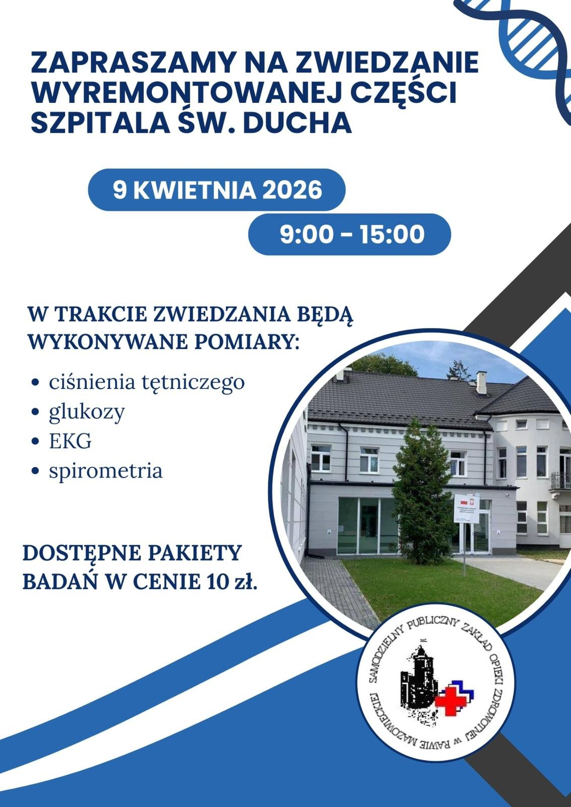 Zaproszenie na zwiedzanie wyremontowanej części Szpitala Św. Ducha w Rawie w dniu 9 kwietnia.